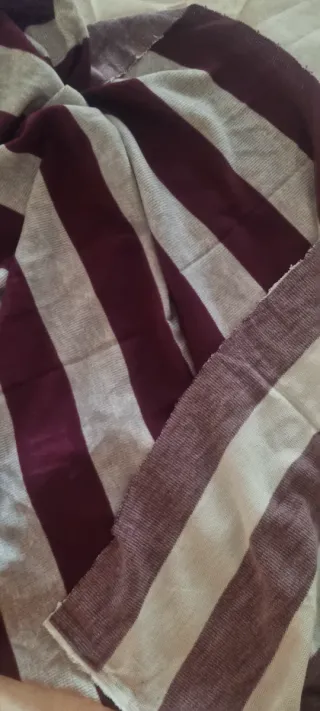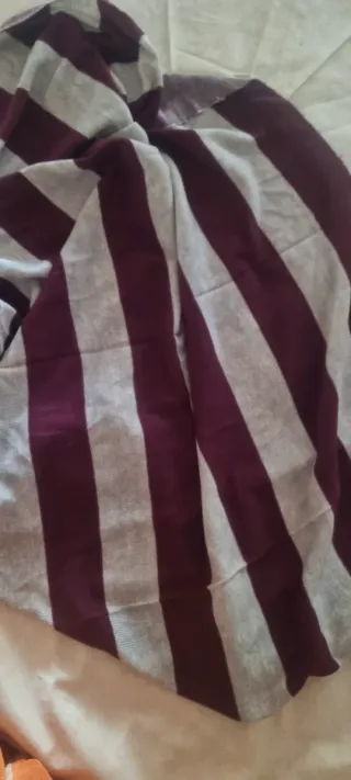 Punto con un diseño de rayas en color burdeos y gris claro. Muy elástica y pesa poco. Es suave al tacto y ligera. Mira mi perfil puede haber algo que te interese y todo muy económico. - Diseño a rayas. - Colores: burdeos y gris claro. - Material suave.
