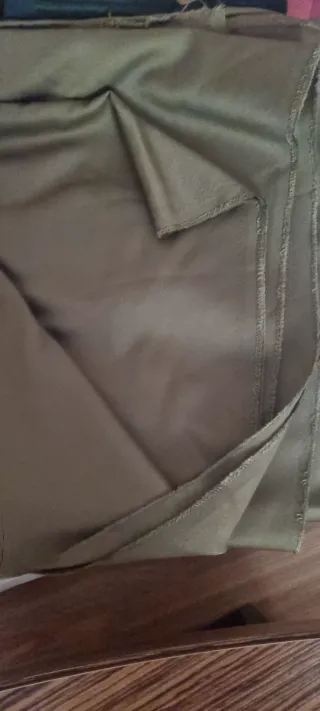 Tejido, retal de color verde más bonito que en fotos, con una textura suave y caída fluida, como terciopelo y pesa poco. Mide algo más que lo indicado. Mira mi perfil puede haber algo que te interese y todo muy económico. - Material: satinado.