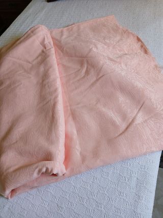 Tela de cortina salmón con dibujo buen jenero medidas 6 metros de largo doble de ancho por uno imedio de ancho doble