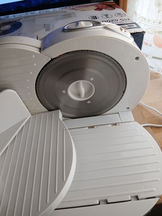 Cortafiambres eléctrico MS 4200, ideal para cortar todo tipo de alimentos. - Cuchilla de acero inoxidable. - Bandeja de alimentación. - Protector de cuchilla.
