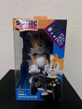 Soporte para teléfono y mando del personaje Tails de Sonic the Hedgehog. Incluye un cable de carga 2 en 1 de 2 metros. - Diseño del personaje Tails. - Funciona como soporte para dispositivos. - Incluye cable de carga de 2 metros.