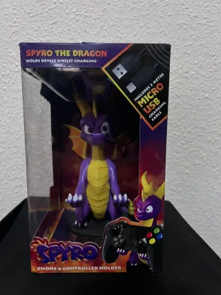 Soporte para mando y móvil con figura de Spyro The Dragon. - Figura de Spyro The Dragon. - Soporta dispositivos mientras cargan.