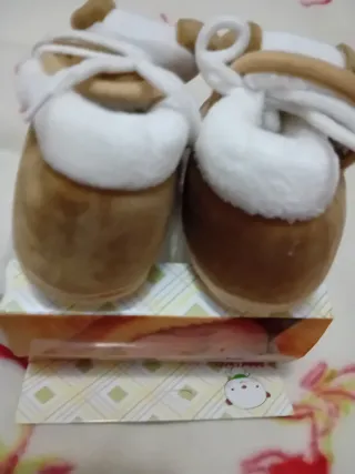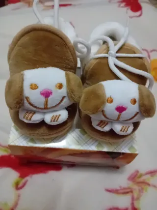 par de bobitas para bebé (3-12), con diseño de perrito. - Suaves y cómodos. - Color marrón y blanco. - Cierre con cordones blancos.