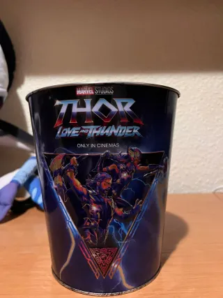 Original palomitero de la película Thor: Love and Thunder. - Diseño con los personajes principales. - Colores vibrantes y detalles de rayos. - Edición Limitada Estreno En mi perfil tengo los palomiteros de estreno de las películas Avatar, Thor, Harry Potter.