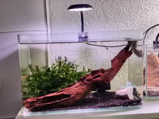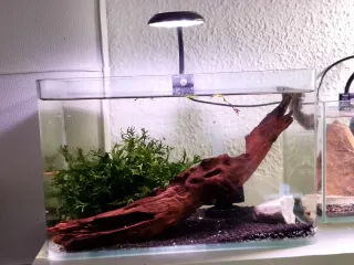 Acuario gambario completo con plantas y tronco