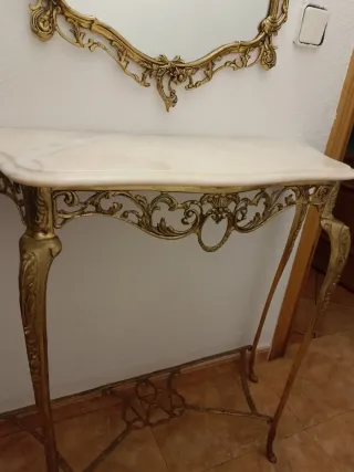 Consola de entrada dorada con espejo