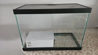 Urna de cristal con tapa negra, ideal para terrarios. - Dimensiones: 35x25x18 cm. - Incluye accesorios: portalámparas y bombilla infrarroja de 40W.
