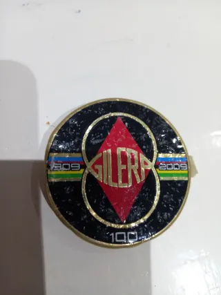 Anagrama conmemorativo de Gilera por sus 100 años. - Diseño circular con detalles en rojo y dorado. - Incluye los años 1909 y 2009 a los lados. - Número 100 en la parte inferior.
