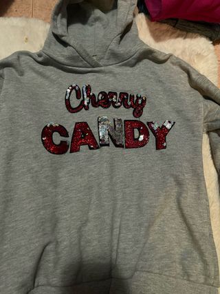 Sudadera gris de Zara Kids. Esta como nueva está perfecta. Quien esté interesado escribir al privado - Talla 10. - Diseño con lentejuelas. - Estampado Cherry Candy.