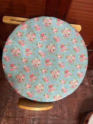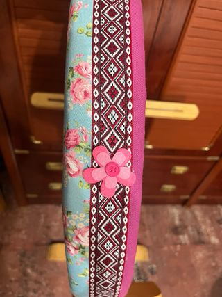 Bolillero redondo con un bonito estampado de flores rosas sobre fondo azul claro. Ideal para añadir un toque de color y estilo. - Diseño floral. - Forma redonda. telas nuevas a estrenar 50*50 de diámetro y 6’50 de grosor