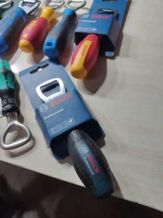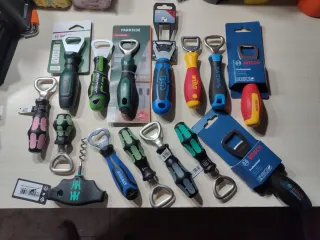 Se vende o cambian abrebotellas con mango de herramientas! Abridores ideales para colección. Los hay de Wera, Bosch, Parkside, Snap On, Quinn, Wiha, Harbor Freight, Bosch Professional, SW Stahl, BGS, Kobalt, Premier... La mayoría de ellos importados personalmente de USA y Alemania. Se intercambian por otros de otras marcas o colores, o por alguna de marcas de coche, Renault, KTM... Precio unitario Abridores, abrebotellas, abre botellas, abridor de cervezas, botellines, destapador, descorchador, vino... Precio unitario.