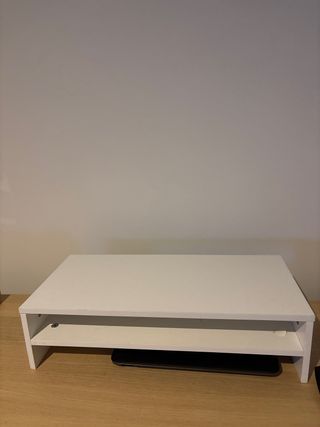 Práctico soporte blanco para organizar tu espacio de trabajo. Ideal para elevar tu pantalla o teclado. - Diseño de dos niveles. - Color blanco. - Material resistente.