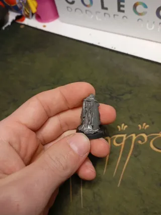 Miniatura de Frodo Bolsón, personaje de El Señor de los Anillos. Ideal para coleccionistas. - Figura metálica. - Base negra.