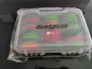 Kit de portabajos de la marca ZUNZUN. Incluye varios discos de colores. - Discos de colores surtidos: naranja, rosa y verde. - Estuche transparente para guardarlos.