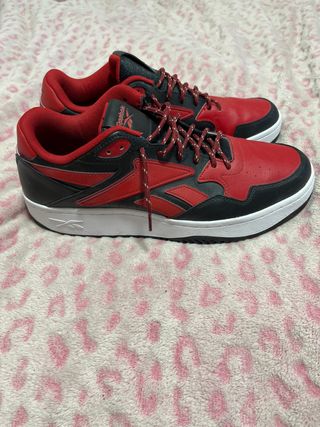 Zapatillas Reebok ART Chill, color rojo y negro. Han sido usadas solo una vez, están prácticamente nuevas. - Diseño deportivo. - Cierre con cordones. - Suela blanca.