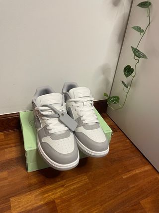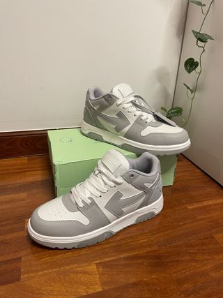 Zapatillas deportivas de estilo urbano en tonos grises y blancos. Talla 44 - Diseño moderno con detalles en contraste. - Cordones blancos. - Suela de goma.