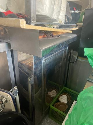 Se vende equipamiento de restaurante, pizzería y heladería. Incluye varios corta fiambres, horno, amasadora masa pizzas, cocina, dos arcones congeladores grandes , mostrador vitrina para helados, marmita caliente, mesas de trabajo acero inoxidable , estanterias acero inox, cafetera italiana cinco brazos, mostradores, y muchas otras cosas artículos en acero inoxidable que parecen estar en buen estado, aunque usados. todo memos mesas y sillas, hay de todo, gran oportunidad - Se aprecian mostradores y refrigeradores. - El precio total es de 8000€.