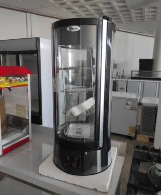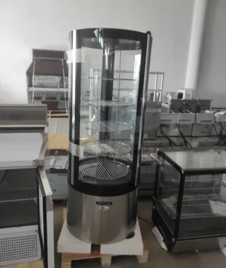 Vitrina pasteleria giratoria - Diseño cilíndrico. - Estructura de acero inoxidable y cristal. - Bandejas interiores. - Panel de control digital.
