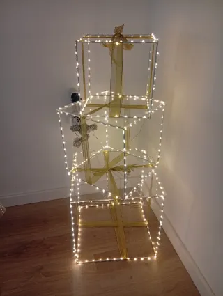 Vendo 3 cajas en forma de regalo para decoración con luz bastante iluminado, queda muy chulo para decorar en navidad en casa o en tiendas para escaparate.
