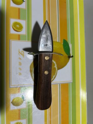 Herramienta para abrir ostras. - Hoja de acero inoxidable. - Mango de madera.