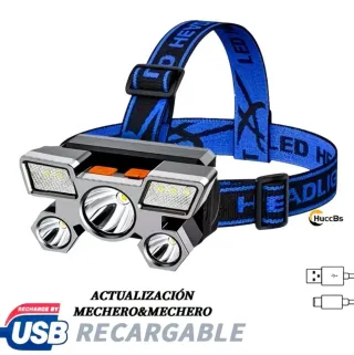 Linterna Frontal LED Recargable USB – 5 LED NUEVO