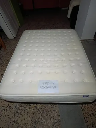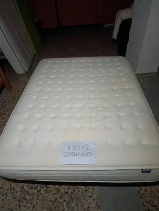 Colchón de matrimonio en buen estado, listo para usar. - Medidas: 150 cm de ancho x 190 cm de largo. - Tejido con Aloe Vera.