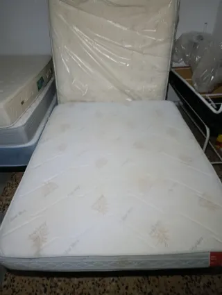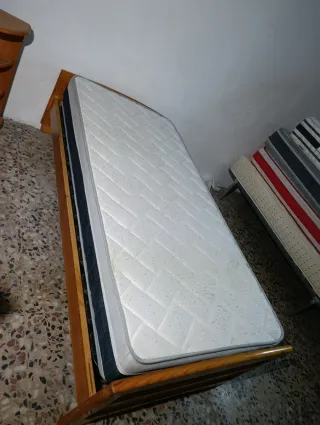 Se vende conjunto de colchón y somier para cama individual. - Medidas: 90x200 cm. - Ideal para habitaciones de tamaño reducido o para uso individual.