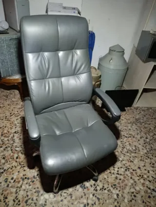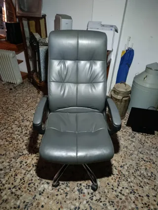 Sillón de escritorio con un diseño moderno y cómodo. - Base metálica con ruedas. - Tapizado en polipiel.