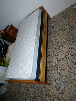 Se vende estructura de cama individual de madera con colchón viscoelástico 90×190 - Medidas: 90x190 cm. - Material: Madera.