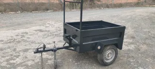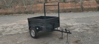 Remolque de carga de color gris antracita, ideal para transportar diversos materiales. - Remolque tramed. - Estructura metálica robusta. - Ruedas nuevas 175. - Enganche para vehículo. - Medidas 1,40de largo 1,0 de ancho 0,50 de profundidad,medidas interiores. - Recién pintado. - SIN PAP3LES.