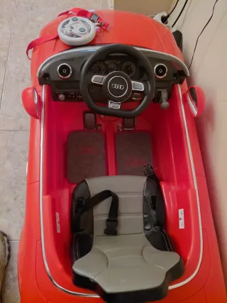 Coche eléctrico infantil de color rojo, ideal para que los más pequeños disfruten. - Incluye mando a distancia para control parental. - Diseño deportivo. - Asiento con cinturón de seguridad.