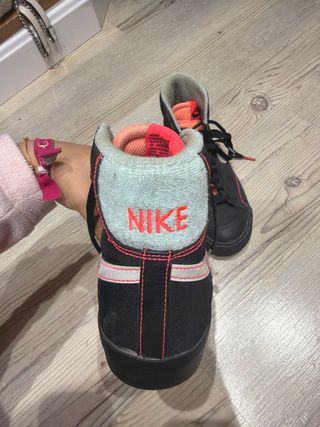 Zapatillas altas Nike Blazer Mid en color negro con detalles en blanco y rojo. - Diseño de caña alta. - Swoosh lateral en blanco. - Cordones negros. - Suela azul y roja