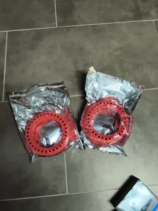 Dos neumáticos sólidos de color rojo para patinete. Están en su embalaje original. Xiaomi - Material: Goma. - Color: Rojo. - Cantidad: 2 unidades.