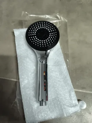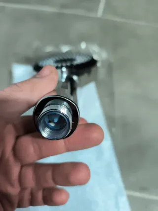 Alcachofa de ducha con diseño moderno y acabado cromado. - Cabezal con múltiples orificios para un flujo de agua uniforme. - Mango ergonómico para un agarre cómodo. - Incluye filtro interno con esferas.