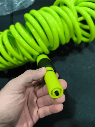 Manguera de jardín en espiral de color verde lima. Incluye un accesorio de mano. - Manguera en espiral. - Color verde lima. - Accesorio de mano incluido.