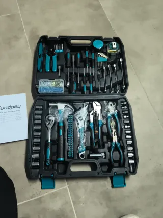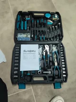 Completa caja de herramientas con una gran variedad de útiles para reparaciones y proyectos. - Incluye llaves, destornilladores, alicates y más. - Diseño compacto y portátil. - Ideal para tener en casa o en el coche.