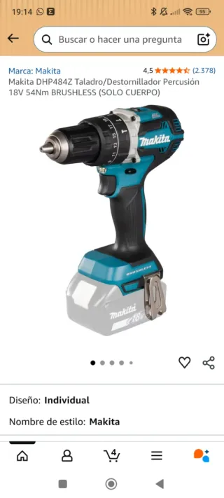 Taladro Makita DHP484Z 18V 54Nm BRUSHLESS
