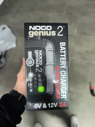 Cargador y mantenedor de baterías NOCO Genius 2. - Compatible con baterías de 6V y 12V. - Corriente de carga de 2A. - Indicador LED de estado. - Apto para baterías AGM y Litio.