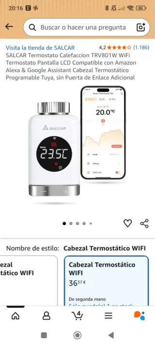 Cabezal termostático SALCAR para calefacción. - Modelo TRV801W. - Pantalla LCD. - Compatible con Amazon Alexa y Google Assistant. - Programable con Tuya.
