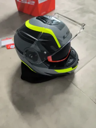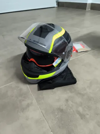 Casco modular LS2 Strobe II en color gris con detalles en amarillo y negro. Incluye visera transparente y bolsa de tela. Talla M - Diseño aerodinámico. - Cierre micrométrico. - Interior extraíble y lavable.