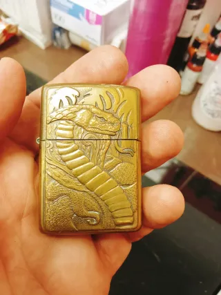 encendedor Zippo fabricado en junio de 1996. es un modelo vintage específico de la colección Barrett Smythe "King Cobra" o "Endangered Animals" de ese año, lo cual refuerza su valor como artículo de coleccionista