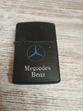 Mechero negro con el logo de Mercedes Benz. - Diseño tipo Zippo. - Logo de Mercedes Benz en azul.