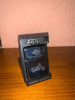 Mechero Zippo con diseño de Harley Davidson XLH 883 Sportster. - Acabado metálico plateado. - Grabado detallado de motocicleta. - Incluye soporte expositor.