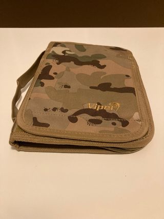 Carpeta táctica con cremallera, porta documentos tamaño A5 (medio folio) color multicam. Marca VIPER. Sin uso. Completamente nueva.