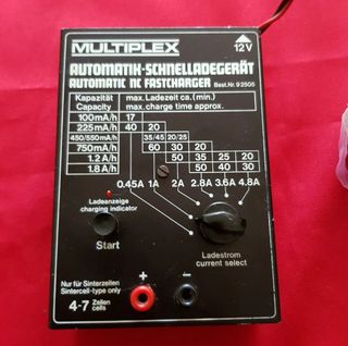 CARGADOR MULTIPLEX AUTOMATIC NC FASTCHARGER REF:92505. EXCELENTE ESTADO VIENE CON CONEXIÓN A MECHERO DE COCHE PERO SE PODRÍAN PONER PINZAS PARA BATERÍA. NO VIENEN CABLES DE CARGA.SOLO CARGADOR. PARA BATERÍAS NÍQUEL CADMIO DE 4 A 7 CELDAS.(Escucho ofertas razonables)
