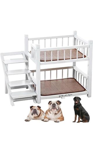 Nueva sin estrenar en su embalaje origuinal. Litera para mascotas, pequeña y medianas, cama extraíble de doble capa para mascotas con escaleras, camas altas y bajas para mascotas pequeñas y medianas. Perfecto para mascotas pequeñas, medianas con alturas y tamaños que se adaptan a todas las razas. Diseño elevado con 10 centrimetros de distancia al suelo para una circulación óptima del aire y comodidad durante todo el año. Calidad prémium: hecha de madera de pino maciza, esta litera es ecológica y está construida para durar. El marco resistente garantiza un excelente apoyo y puede acomodar mascotas de todos los tamaños.