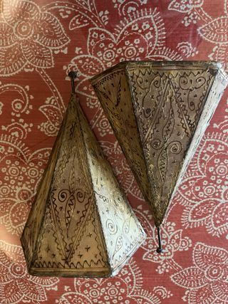 Set de dos apliques de pared en piel con estrucura de hierro macizo. Se vende la unidad suelta a 15 euros. - Diseño piramidal - Estilo rústico - Hecho totalmente a mano