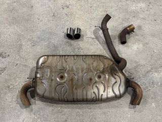 Se vende silenciador trasero original de Ford Focus ST mk2. Tiene las colas de escape cortadas ya que en su día se preparó para llevar unas distintas, pero no se llegó a hacer (se pueden volver a soldar) También se dividió en dos tramos con abrazadera el tubo que pasa por encima del puente trasero, para que sea mucho más fácil de quitar y poner. Se envía a toda España