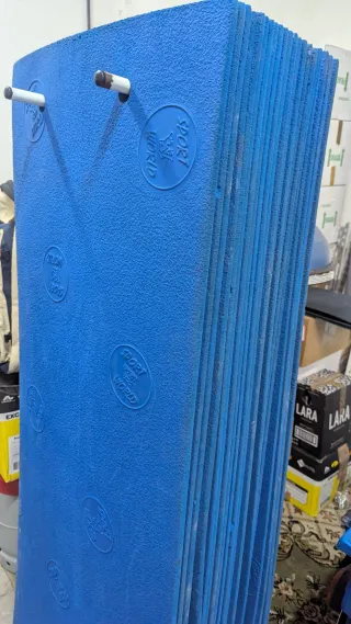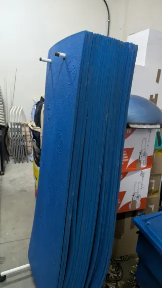 Conjunto de esterillas de ejercicio en color azul. - Material de espuma. - Textura antideslizante. - Diseño apilable para fácil almacenamiento.
