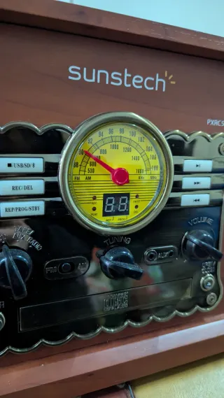 Tocadiscos de estilo retro con múltiples funciones. - Altavoces integrados. - Reproductor de CD. - Radio FM/AM. - Puerto USB/SD. - Entrada AUX. - Función de grabación.